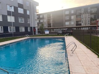 Dirección: Los Sauces condominio Sole II Comuna: Padre Hurtado Región: XIII Región Metropolitana Tipo: Departamento Mts2. Construidos:53 Mts2. Terreno:55 Dormitorios: 2 Baños: 2 Estacionamiento:1 Tipo de operación: venta VENDE LINDO NUEVO DEPARTAMENTO en Los Sauces con retorno a Santiago , Condominio Solé II, Padre Hurtado consta de 2 amplias habitaciones con closet ,2 baños completos, living comedor, cocina integrada completamente equipada y amoblada , logia conexión a lavadora, con estacionamiento Piso 2, orientación sur , el edificio es tranquilo cuenta con acceso peatonal controlado , qinchos, bicicleteros , salon de eventos, piscina juegos infantiles, Emplazado en un sector residencial de la comuna , cercano a colegios , farmacias, , supermercados ,Bar, Restaurante, , Rápido acceso Ruta 78 y Camino a Melipilla. Si usted tiene un subsidio DS 19 , tramo 3 con o sin crédito hipotecario o subsidio leasing habitacional puede comprar este lindo departamento